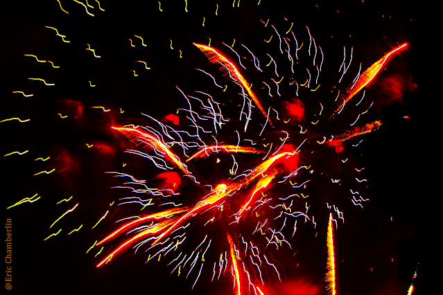 Les feux d'artifice ne sont pas un sujet qui m'intéresse particulièrement, voire pas du tout, sauf à jouer un peu et s'amuser à les saisir en pause longue. De 5 à 30 secondes, le temps pour les capteurs de l'appareil d'infuser toute cette profusion de lumières, de couleurs et de mouvements et de rendre leur copie sous la forme de ces images un peu surréalistes.